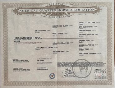 Holly is out of a daughter of Hollywood Jac 86, Jacs Last Valentine earner of NRHA LTE $1,444 and the dam of multiple money and point earners totaling $45,600+ including Cracker Jac Whiz NRHA earner over $30,000 and 110 AQHA pts.