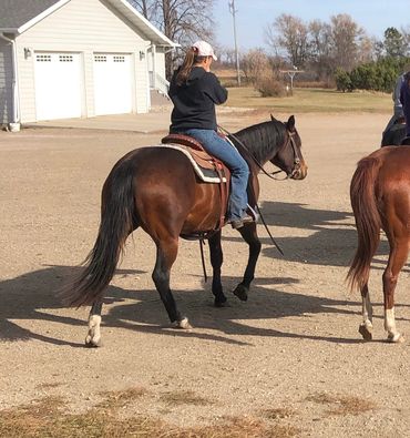 Gracie has been started under saddle and is a fun ride! Calm, willing and confident, a pleasure to ride.