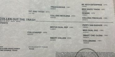 Granddaughter of NRHA Hall of fame sire Trashadeous and Million dollar sire Mister Dual Pep.